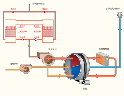 把有機廢氣加熱到760℃以上,將有機廢氣氧化生成CO2和H2O,從而凈化廢氣,并回收分解時所釋出的熱量,以達(dá)到環(huán)保節(jié)能的雙重目的,是一種用于處理中高濃度揮發(fā)性有機廢氣的節(jié)能型環(huán)保裝置。